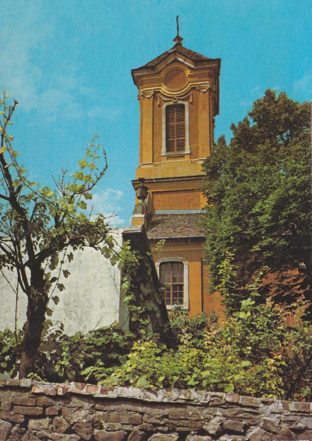 Oldalhomlokzatain középkori falfestménytöredékek láthatók, berendezése viszont teljesen barokk. Belsejének érdekessége, hogy a szentély festett képein a bibliai jelenetek háttere Szentendre városképe. A régi művésztelep alkotóinak képei 1938-ban készültek.