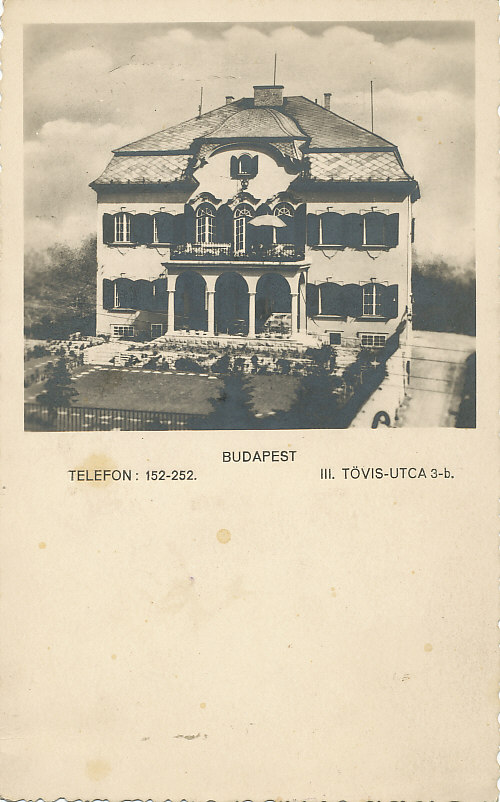 Fotóképeslap a Tövis u. 3/b alatt található villáról. Szépen megőrizve eredeti állapotában fotóztam le 2012 augusztusában.