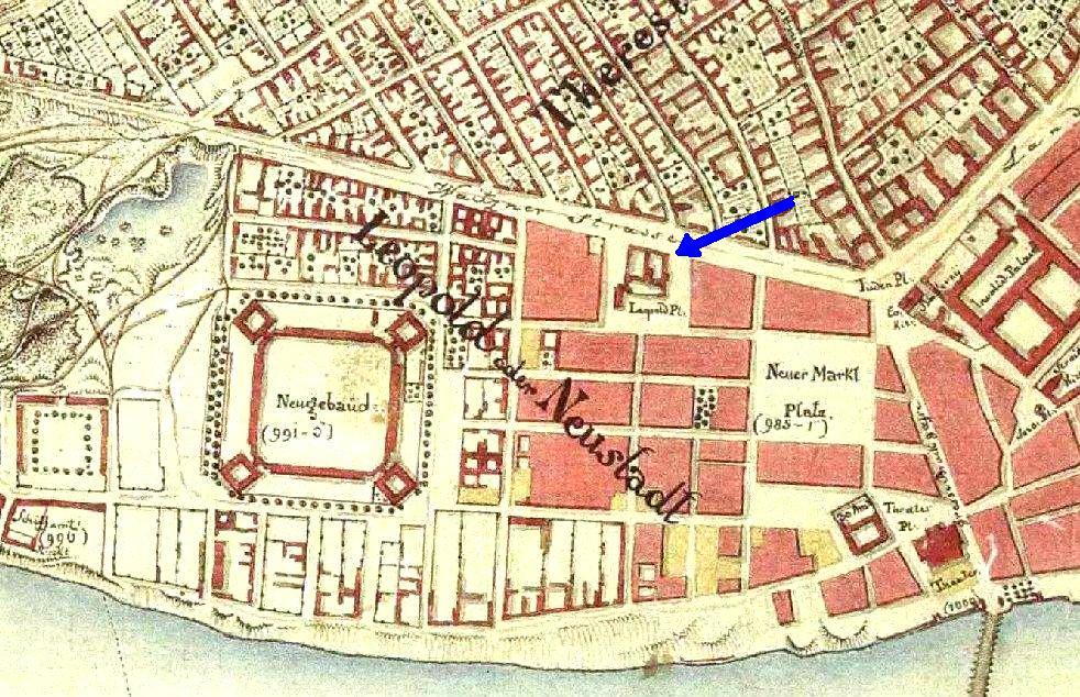 A mellékelt térkép a Leopold-templom helyét mutatja 1823-ból. A jelenlegi Bajcsy-Zsilinszky út akkori neve Waitzner strasse (Váci út) volt.