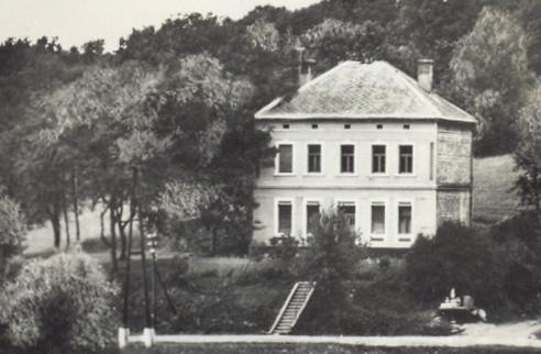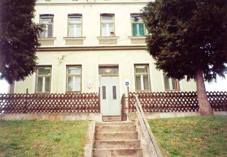 A képeslapon amiből kivágtam ezt a képet természetesen nem szerepel, hogy ez mi. Ám találtam a neten egy képet, ahol van egy hasonló épület és gondoltam nem sok emeletes ház lehet ebben a kis településen.