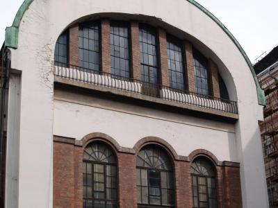 A szabadon álló, részben egy-, részben kétemeletes, vasbeton vázas, magastetõs épület tömegét az egykori gépterem elliptikus ívű teteje jellemzi. Mind a Városháza, mind a Károly körút felőli homlokzata 3+4 tengelyes, a sűrűn osztott és az elsõ emeleten félköríves záródású, téglával keretezett ablakok között háromszög keresztmetszetű nyerstégla falpillérekkel. Szép példája annak, hogy egy ipari épületet miként lehet díszíteni szecessziós részletekkel. Különösen egyedi az íves záródású hosszú ablakok felsõ részének félkör alakú ablakosztása, illeszkedve a donga alakú tetõzet formáját enyhe szamárhátíves vonallal követő homlokzati sávhoz. --- Színházzá alakításakor födémet húztak a gépterembe.