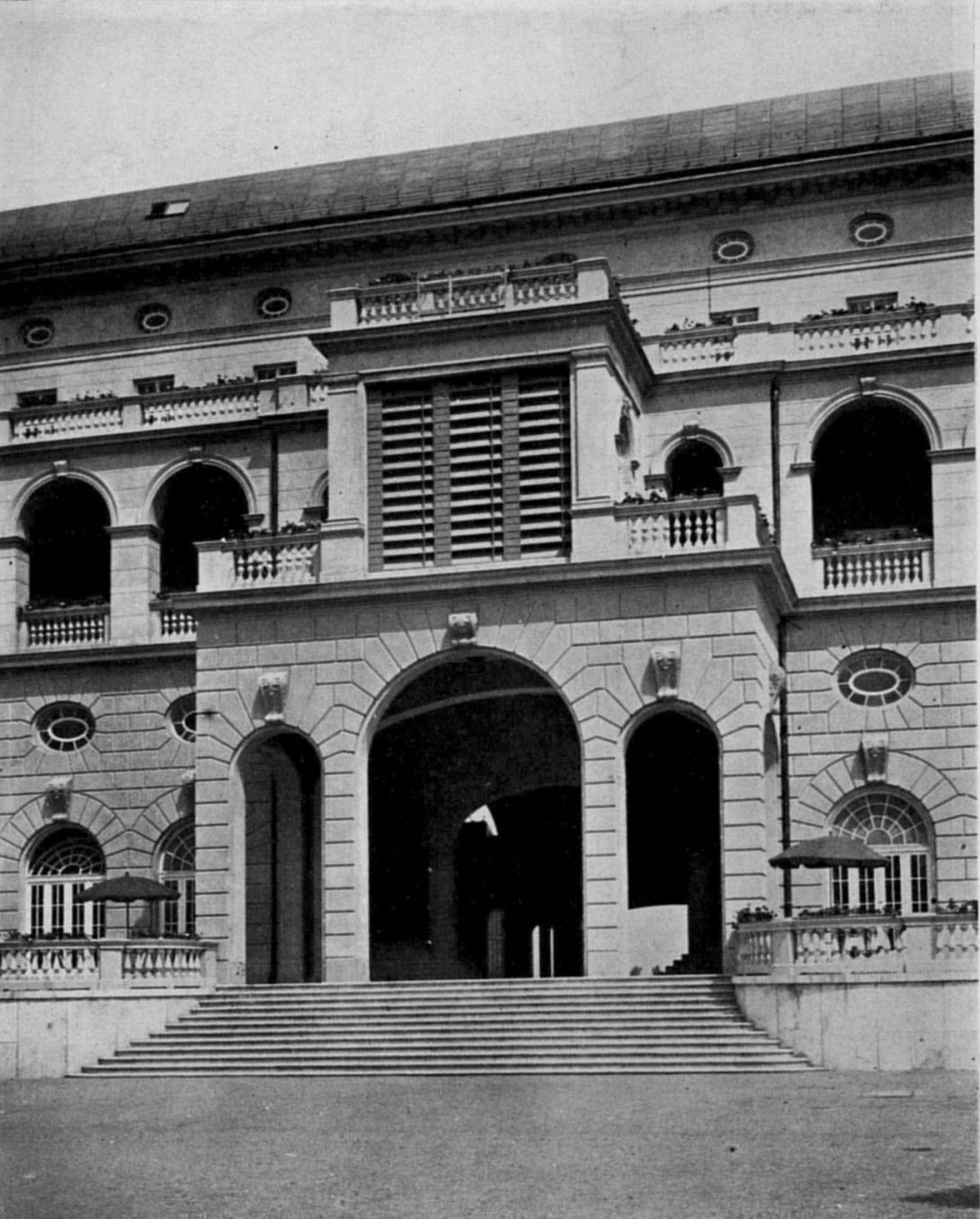 A tribün vasbeton szerkezete az alatta lévő monumentális  helyiségek ferde mennyezetét eredményezte volna, ezt különféle, de egymással összejövő és harmonizáló boltozatokkal küszöbölték ki.  A kivitelezést a Kondor és Feledi építőmesterek nyerték el, építésvezető  Neuhauser Lajos építész volt.