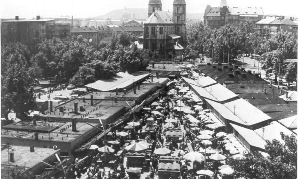 A Váci úti temető felszámolása után kialakított téren (1884-től Ferdinánd, 1945-től Lehel, 1950-től Élmunkás, jelenleg ismét Lehel) rendezetlen szabadtéri piac jött létre (eredetileg a mai Szent Margit-templom helyén). Az öt nagy budapesti vásárcsarnok megléte mellett ez még évtizedekig nyitott maradt, számos közegészségügyi problémát okozva. A templom 1933-as felépítését megelőzően a piacot északabbra helyezték (a mai csarnok helyére), de a korábbi bódés megoldással. A piac korszerűbbé tétele csak 1964-ben került sorra, a bódék helyett pavilonokkal, víz és villany bevezetésével.