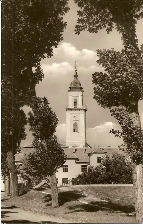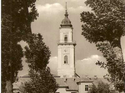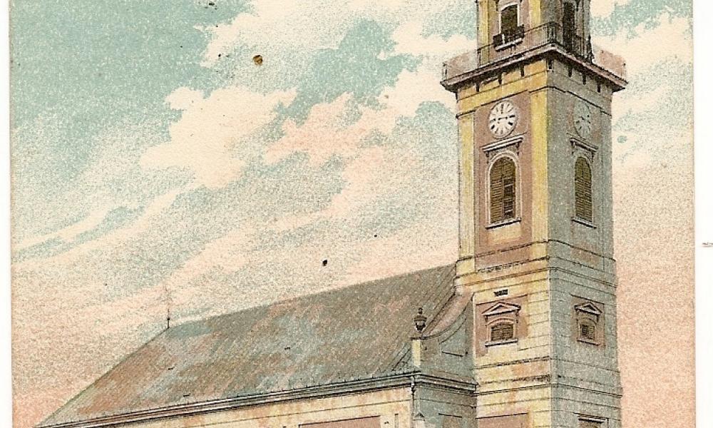 A templom 1794-96 között épült, Fischer Ágoston tervei alapján copf stílusban.