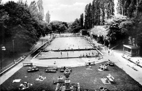 Ahogy a képeken is látszik már nem üzemel. 1853-ban építették az első fürdőt, majd 1886-ban egy új medencével bővítették. 1933-ban teljesen átalakították a strandot a "mai" formájára. Népfürdő, majd Városi strand volt a neve.